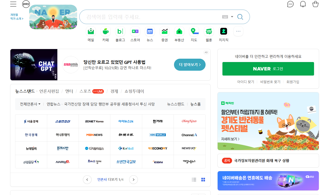 네이버 바로가기 홈페이지